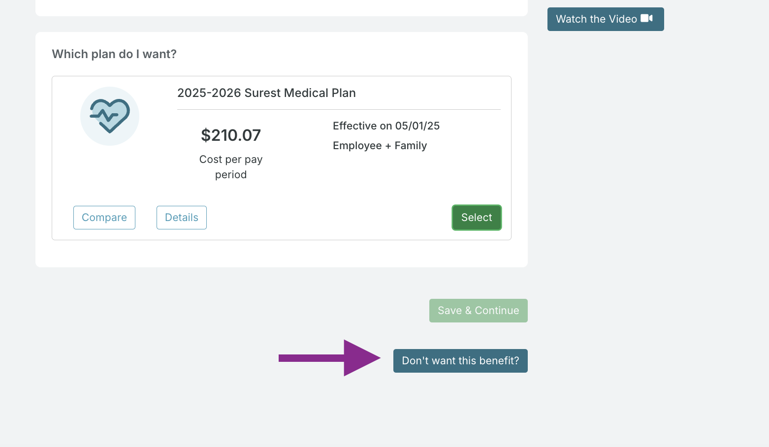 - Don't Want This Coverage? If you do not want to enroll in the benefit, click on Don't want this benefit? and then select the reason why you do not want to enroll in the plan, and then click Apply.