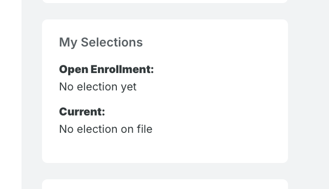 - My Selections - Look for this section on the top-right side of the screen for each benefit page. If you are currently enrolled in the plan, it will be displayed here along with your current cost.