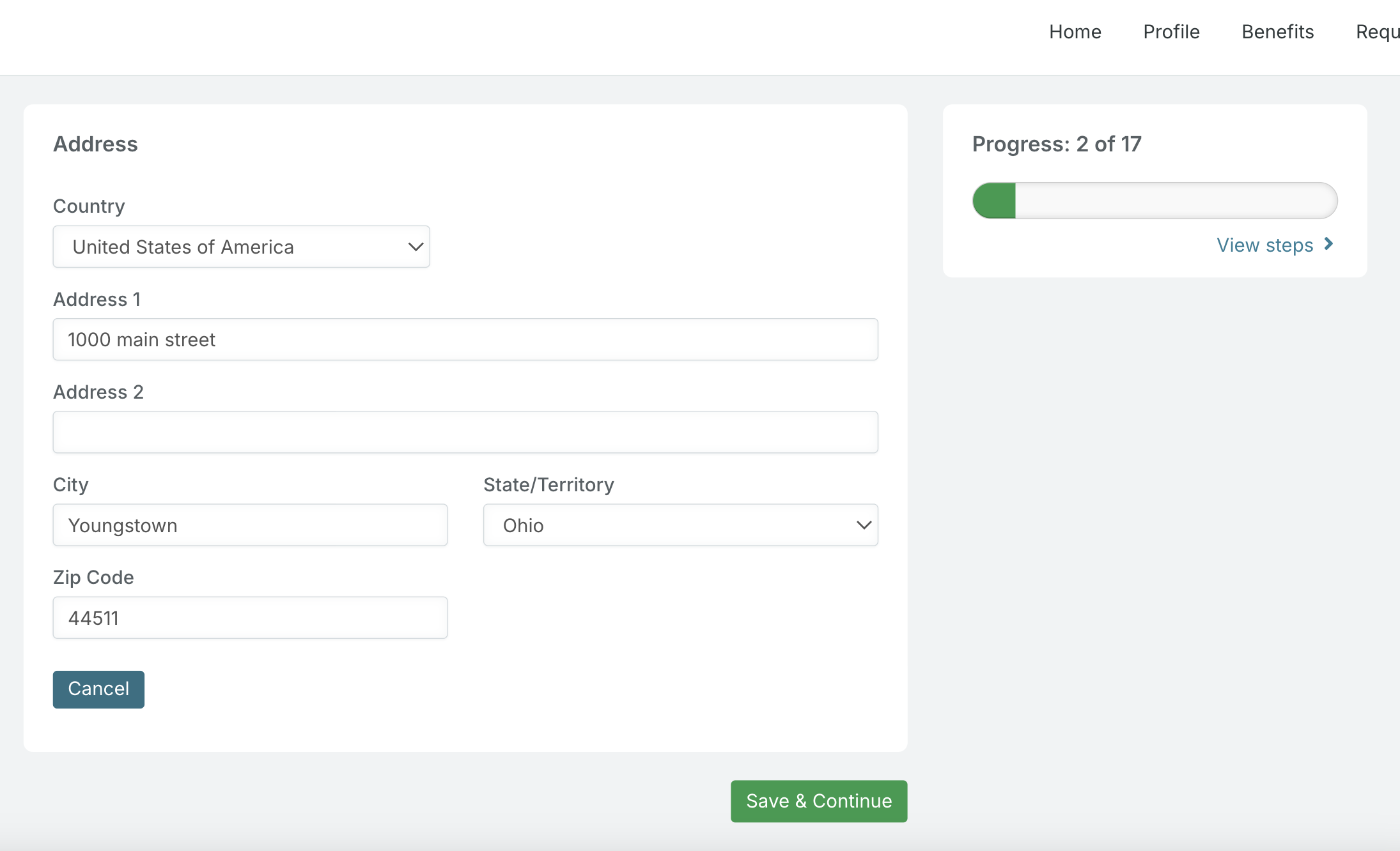 Step 6: Verify or edit your address information and then click Save & Continue.